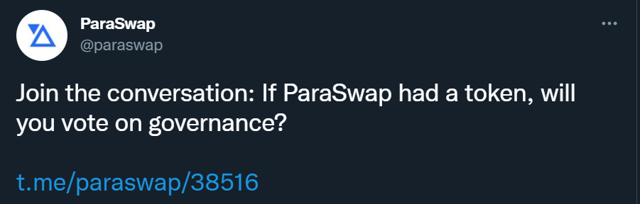 One of the largest DEX aggregators. They have not given any hints of a imminent token launch yet. They are on Ethereum/Polygon/BSC/Avalanche. Cost to make a swap is low.