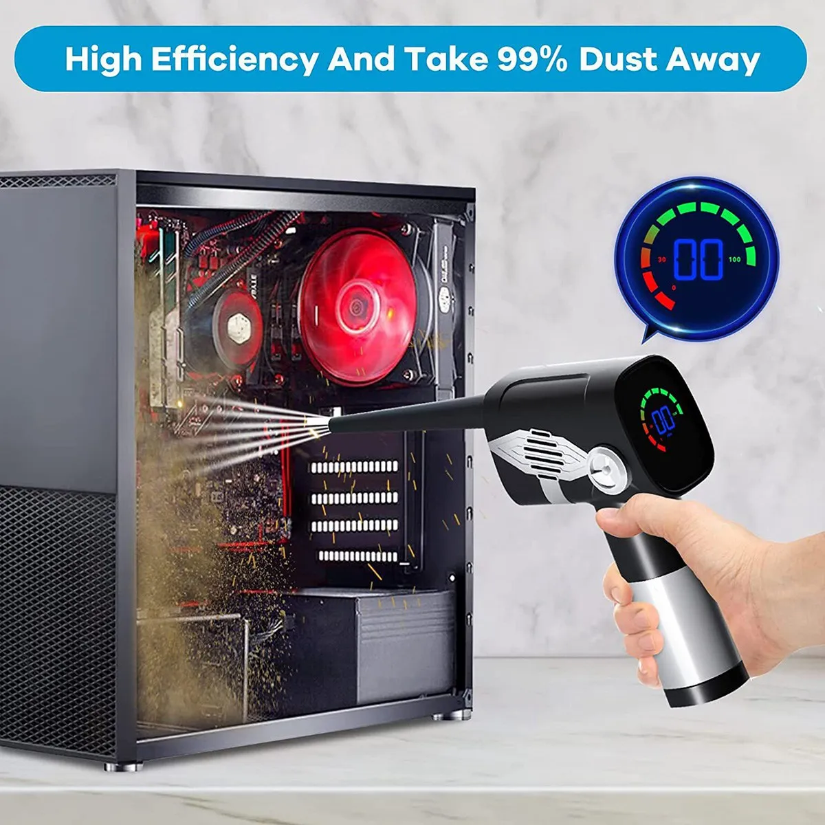 Compressed Air Duster Keyboard Cleaner Portable Cordless Computer Dust Blower with Battery Display,5-Gear Speed - Купить с бесплатной доставкой