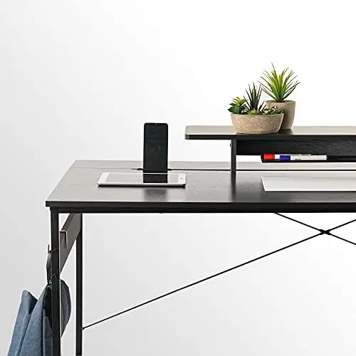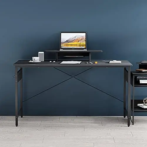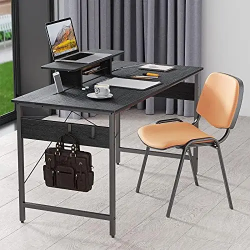 LdNueCXuEHere you can buy Computer Desk 55 Inch Home Office Desk with Storage Table, Modern Writing Style PC Table with Mobile Phone Bracket and Hooks, Br with free delivery to your post office.