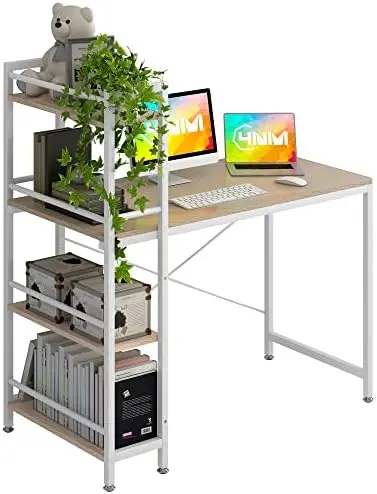 "Computer Desk with 4-Tier Bookshelf, Home Office Desk Writing Workstation Study Table Multipurpose for Small Space Work - Natura" * Buy Now With Free Shipping Just For $123