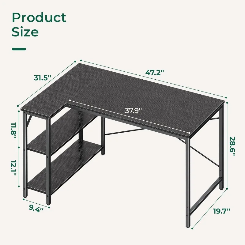 "Computer Desk with Reversible Storage Shelves,Gaming Desk,Corner Desk Home Office Desks,Writing Desk Study Desk with Metal Frame" * Buy Now With Free Shipping Just For $34