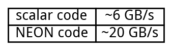 Keyhan Vakil came up with a nice solution with relies on the availability for “narrowing instructions” in ARM processors. Basically you can take a 16-byte vector registers and create a 8-byte register (virtually) by truncating or rounding the results. Conveniently, you can also combine bit shifting with narrowing.
