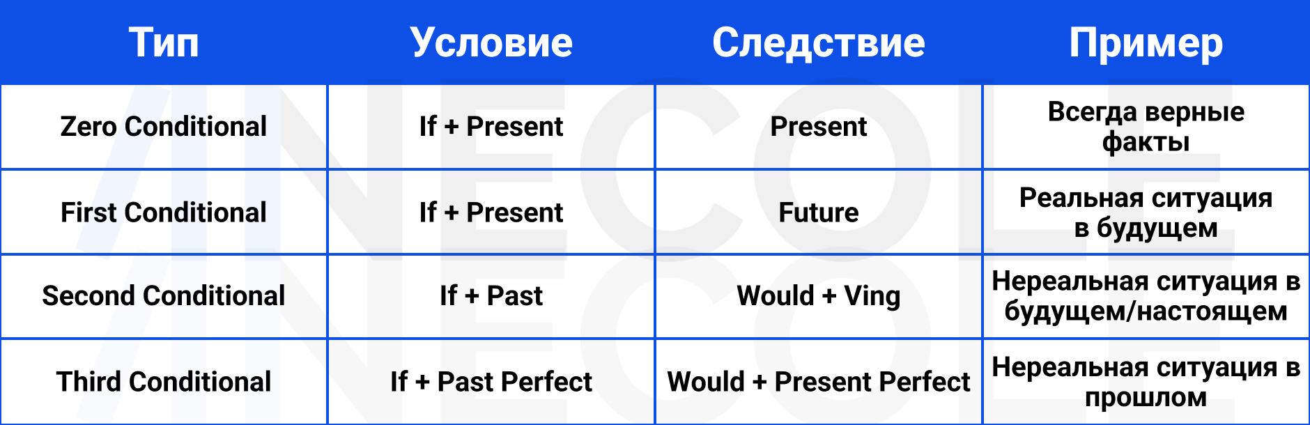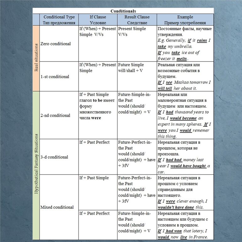 Conditionals правило на русском