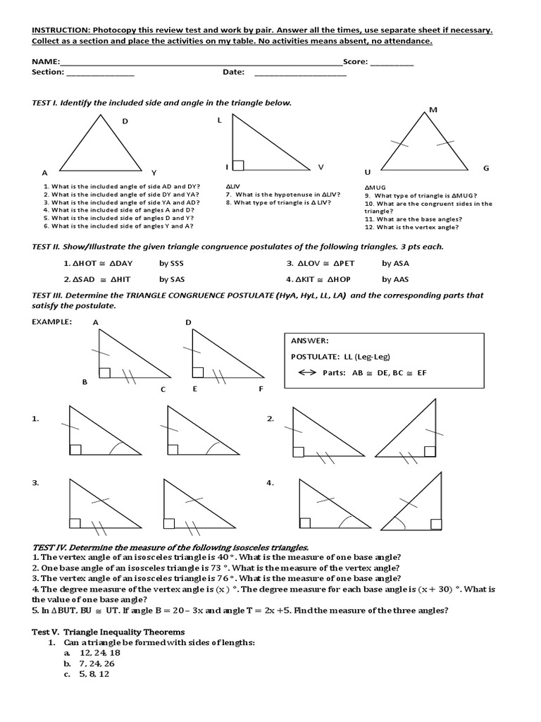 PDF Practice Test Triangle Congruence - Disney II Magnet