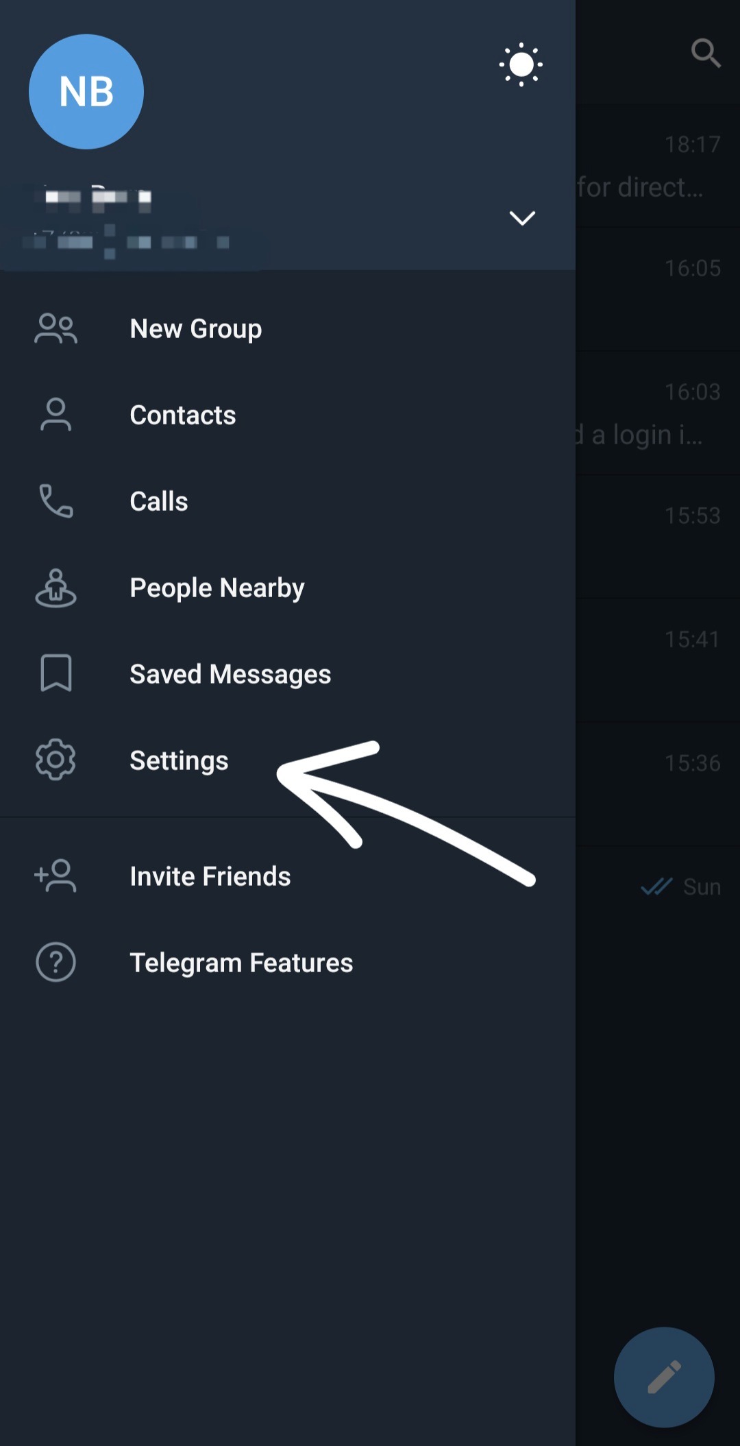 To check the active session, go to Settings.
