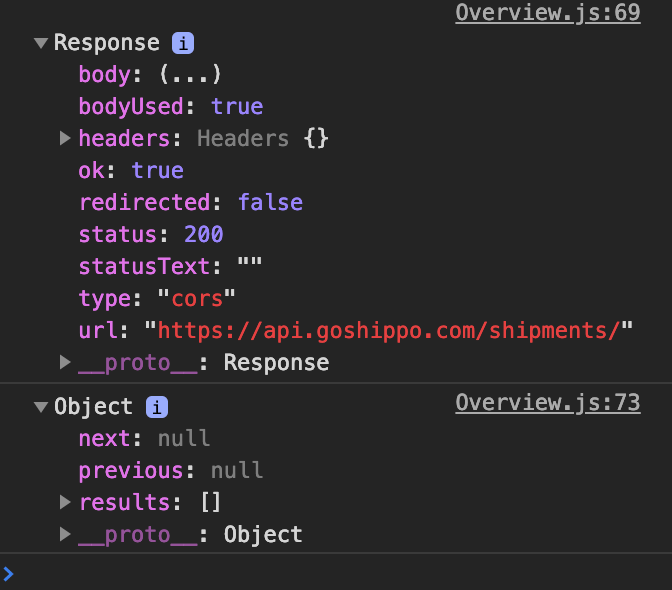 Console log response