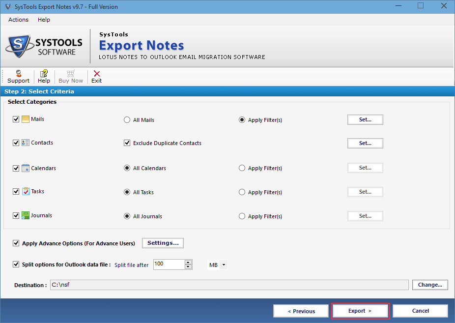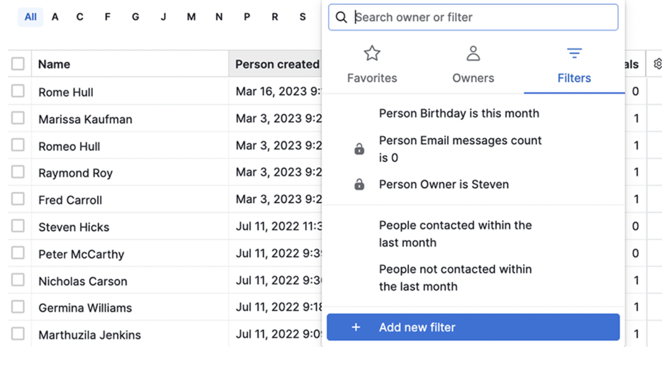 Contacts filter