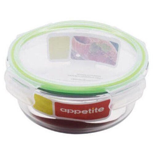 Contenance : 950 ml. Dimensions : 170x170x65 mm. Verre résistant à la chaleur, couvercle en plastique scellé.
