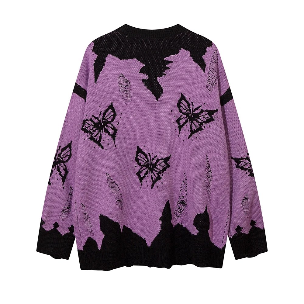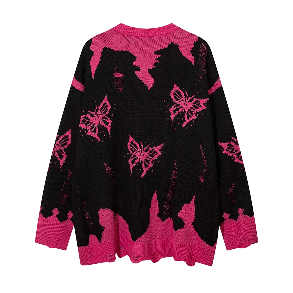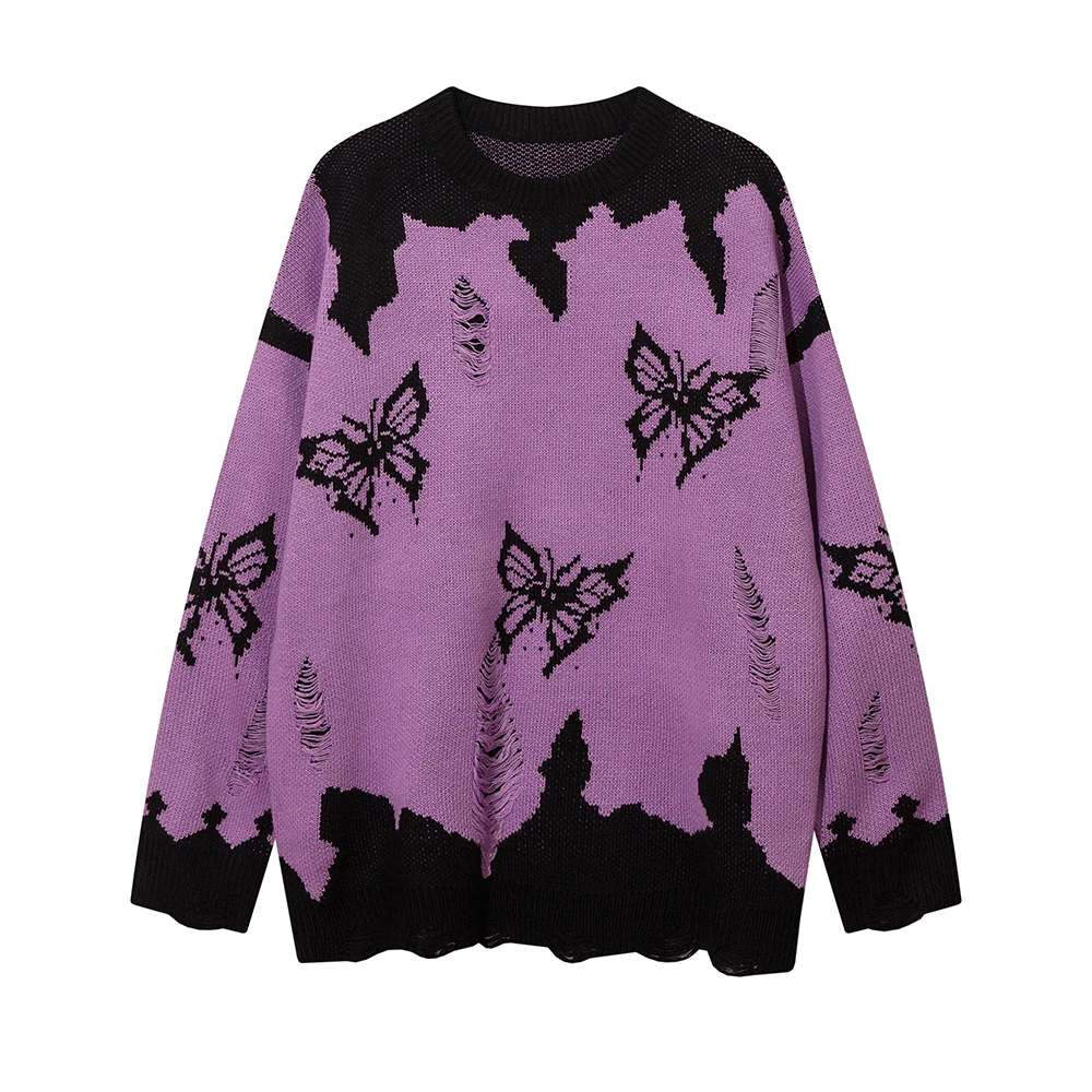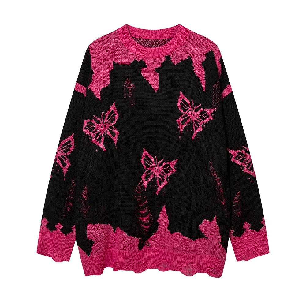 KEaVqFYvQHere you can buy Contrast Color Patchwork Butterfly Ripped Men's Sweaters Pullover High Street Y2k Ropa Hombre Casual Knitted Tops Oversized with free delivery to your post office.