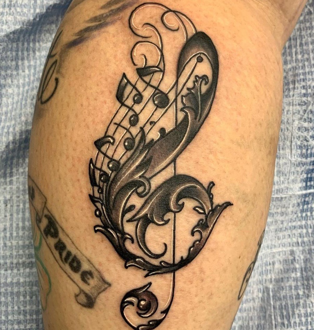 Many people are inspired by music, so it is no surprise that tattoos with musical themes are popular. People may base their entire lives around music, especially if it's part of their career or if they're in a band.