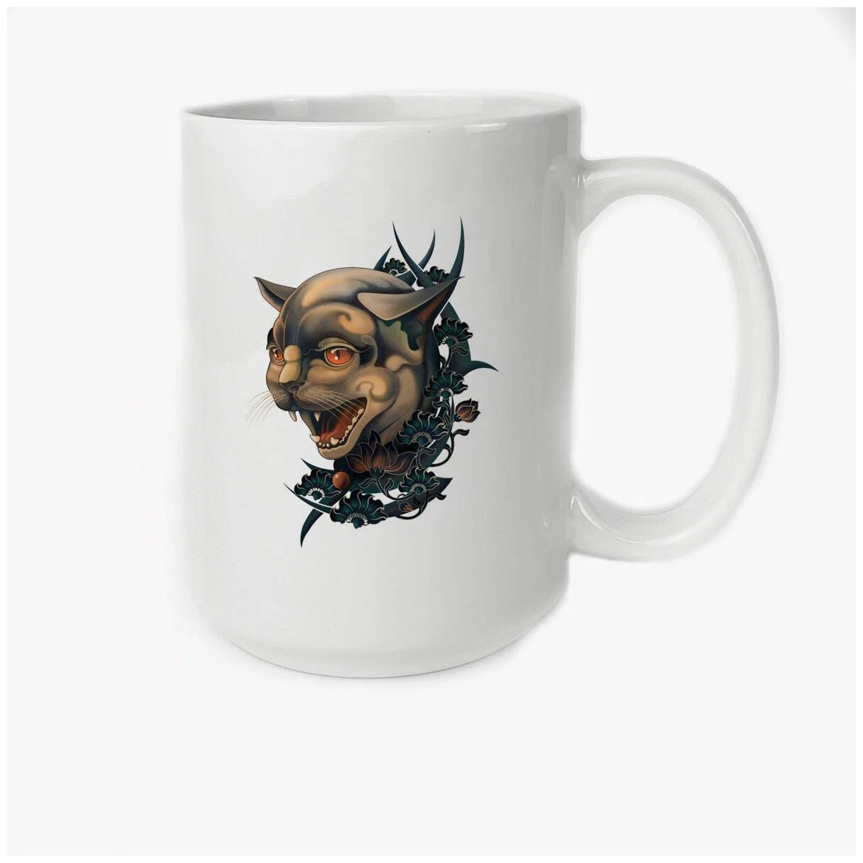 CoolPodarok mug Puma et fleurs art