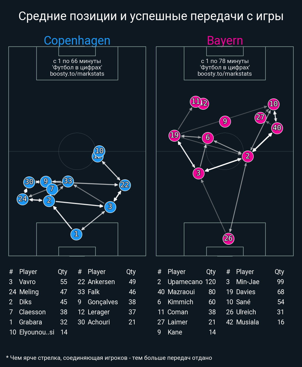 113 успешных передач из 120 попыток (3 с продвижением, 5 на трети соперника)