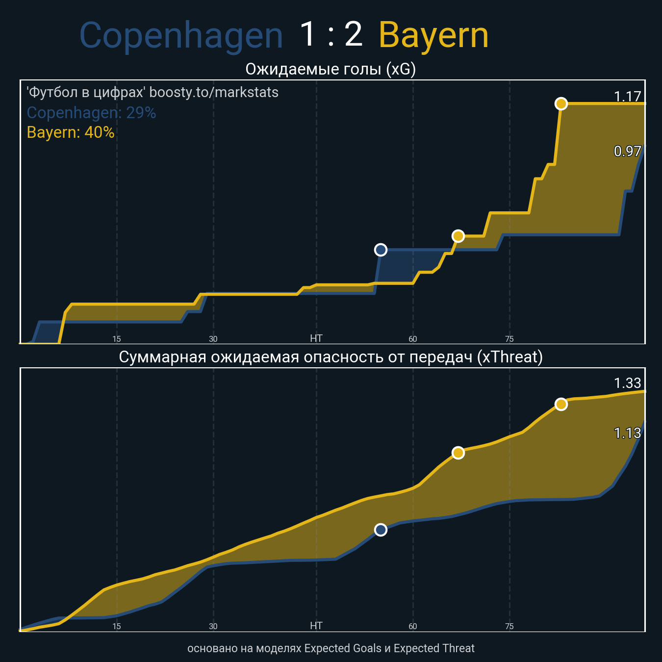 Ожидаемые голы (NPxG): 0.97 - 1.17