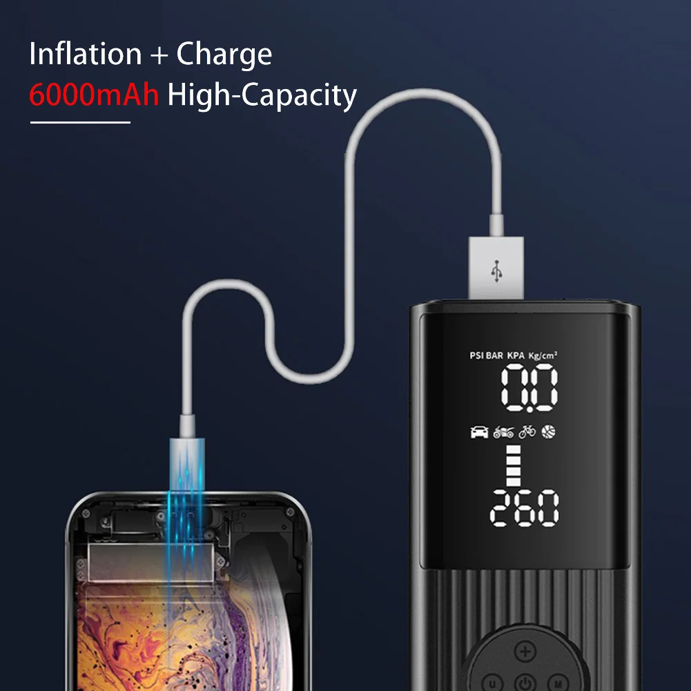 qUtOXRBHHere you can buy Cordless Car Tire Inflator 6000mAh Portable Air Compressor Pump With LCD Display LED Power Bank For Car Bicycle Motorcycle Ball with free delivery to your post office.