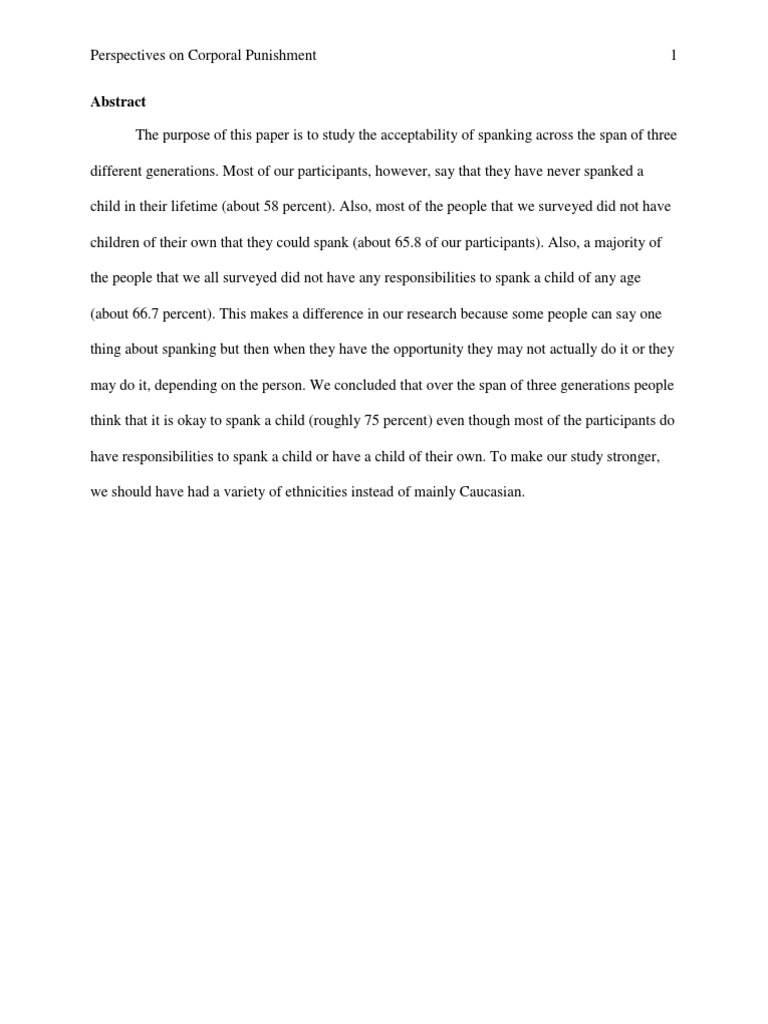 My father said that as he grew up, he was disciplined with corporal punishment and even at school he was mildly punishmented physically . My mother was spanked a few times growing up, but being the . . .