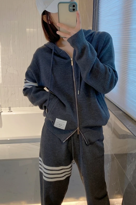 «Correct Good Goods ~ TB Up and Down Double Zipper Hooded Set Women's Knitted Wool Cardigan Loose Sports Jacket Autumn» по лучшей цене на рынке! Всего за 45$ (4275рублей)