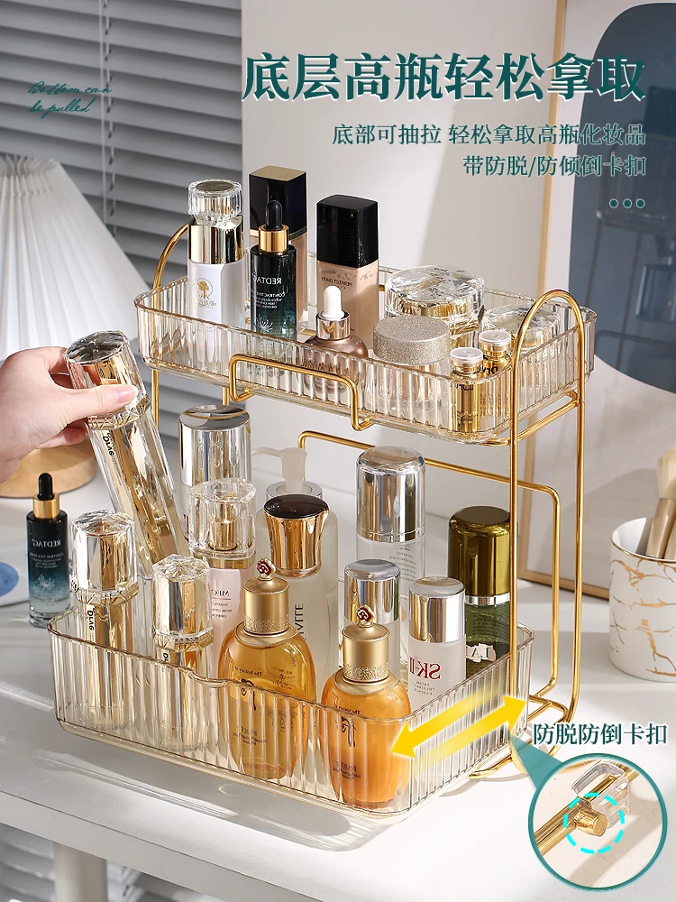 VeKfaQfsЗдесь вы сможете купить Cosmetics Storage Box Plastic Transparent Light Luxury Suitable Bedroom Desktop Dressing Table Skin Care Box Wash Storage Rack с бесплатной доставкой до вашего почтового отделения.