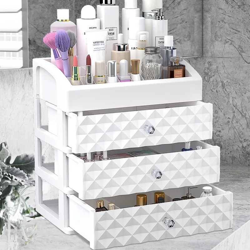 Cosmetics Storage Box Three Layer Drawer Makeup Jewelry Organizer Desktop Lipstick Nail Oil Container Beauty Cosmetic Case