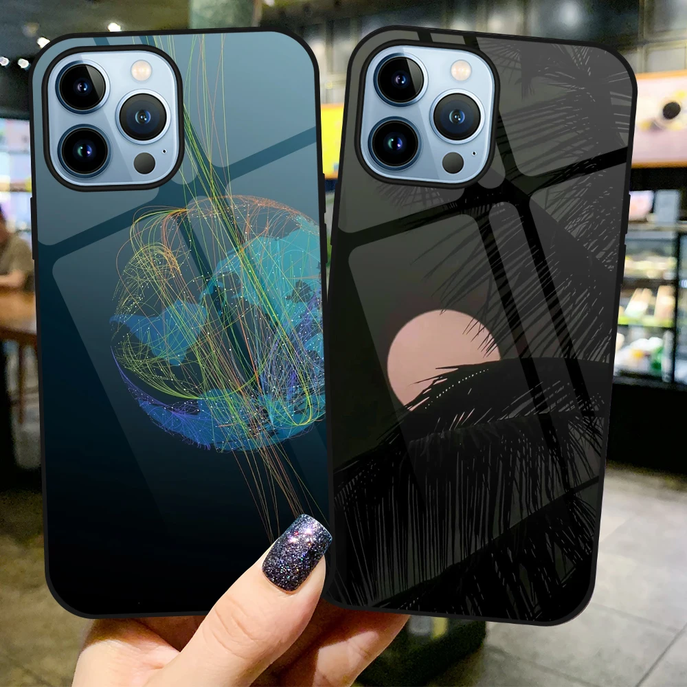For iPhone 7 8 11 12 13 Pro Max Color Luminous Tempered Glass Phone Case Personalized Phone Case for Cool Women Fashion Men po l 10 06