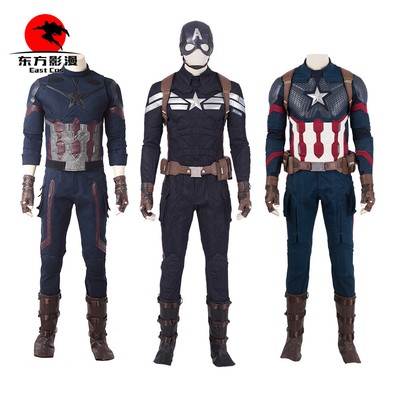 The Avengers: Endgame Captain America cosplay costume comes in every variety ranging from tops with sleek shoulder pad, pants which have an edgy cargo pants' style, gloves, vest, straps, belt with four side pouches, boot covers, and hoods .