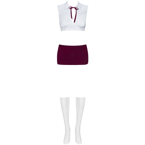 Costume d'écolière Étudiante &#40, haut, jupe, string, chaussettes montantes&#41,Quoi de plus sexy qu'une charmante fille habillée en étudiante séduisante ! Une élève espiègle doit toujours être sous la stricte direction de son professeur, car elle n'a besoin que d'étudier « excellemment » ! Mais la séance arrive bientôt ! Dans le costume d’étudiant « Obsessive », il est vraiment confortable et agréable d’assister aux cours et de faire les devoirs du professeur. Et vous devez les faire avec votre mentor préféré, car cette méthode vous permettra de mieux et plus profondément vous plonger dans vos études ! Le costume se compose d'une jupe courte bordeaux qui dévoile des jambes séduisantes et se concentre sur les hanches. Le haut comporte un haut court blanc avec des panneaux transparents qui attirent toute l'attention sur votre poitrine. L'ensemble est complété par des jambières blanches avec des nœuds bordeaux et des tongs bordeaux, qui rendent l'ensemble plus piquant ! N'hésitez pas à découvrir de nouvelles recoins inexplorés du corps avec votre proche, et soyez sûr de réussir l'examen sur les zones érogènes de votre partenaire avec brio ! Taille : L/XL Matière : 88% polyester, 12% élasthanne Couleur : blanc, bordeaux Conditionnement : Boîte