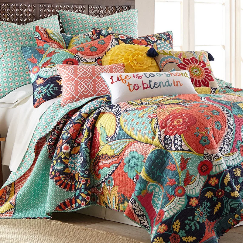 «Cotton Quilted Bedspread on the Bed with 2pc Pillowcases Boho Style Quilt Blanket Linen Plaid Coverlet Cubrecam Bed Cover Colcha» по лучшей цене на рынке! Всего за 109$ (10355рублей)