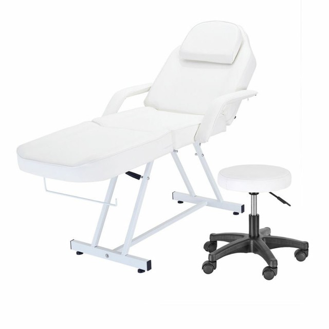 Salon Style White Leather Cover Beauty Professional Facial Tabel Bed Chair Massaging Tables for Barber Face Beauty Updated Facial Beds and Tattoo Chairs with Stool 4 .6 out of 5 stars 142 $309 .99 $ 309 . 99 ($309 .99/Count)