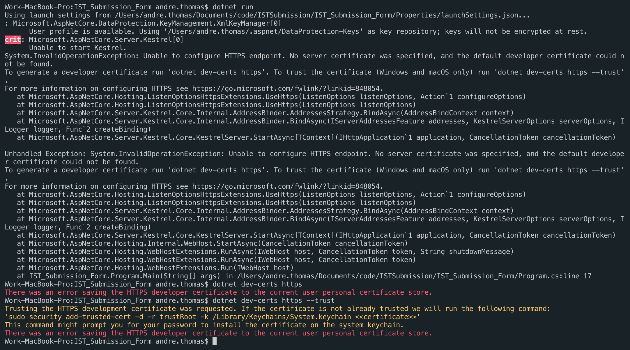 Could not find dotnet