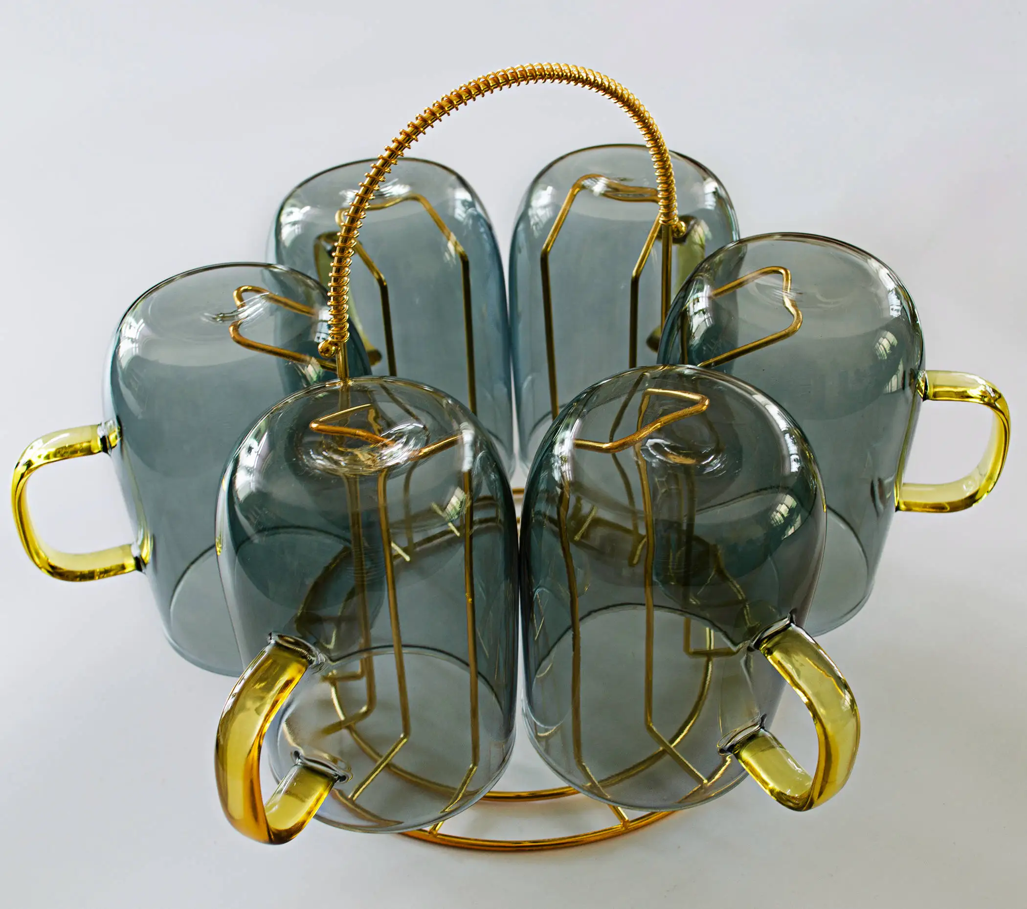 Counter Golden Metal Round Mug Hooks Home Kitchen Storage Rack & 6PC Coffee Tea Cups - Купить с бесплатной доставкой