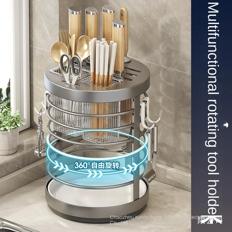 UtDtfRfCvHere you can buy Countertop Rotary Tool Holder Kitchen Knife Chopsticks Cage Integrated Storage Rack Drain Rack Luxury Kitchen Organizer Stand with free delivery to your post office.