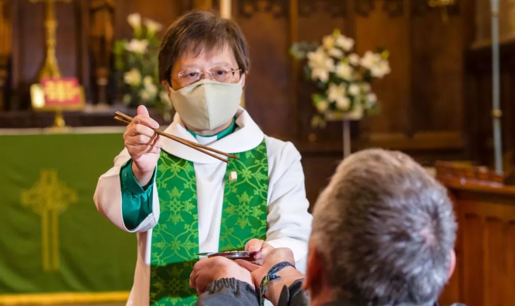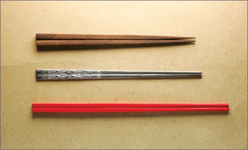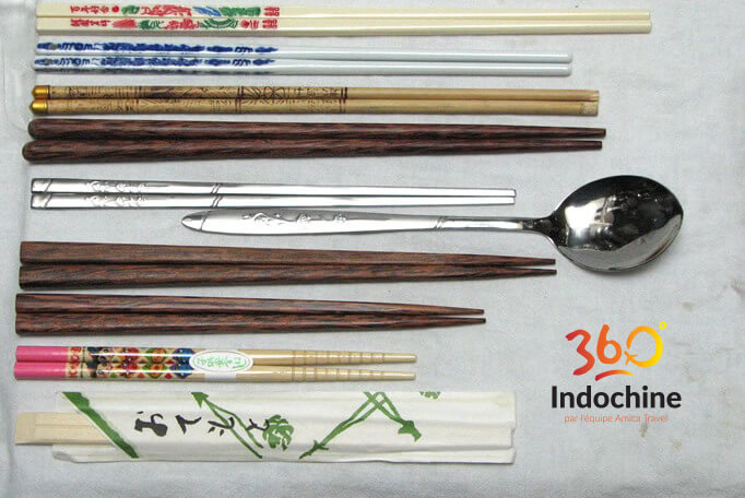 Couple asiatique utilisant des baguettes