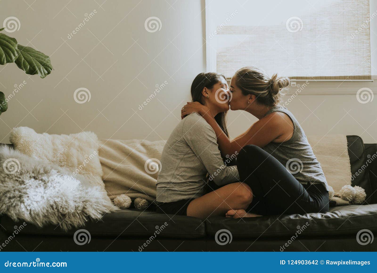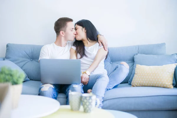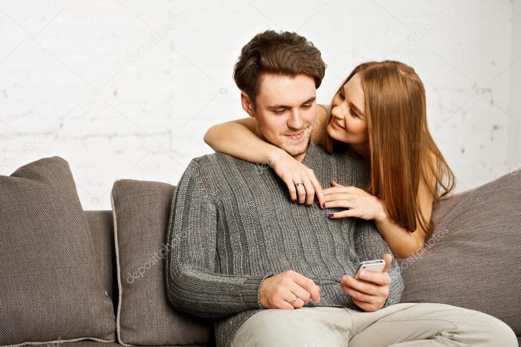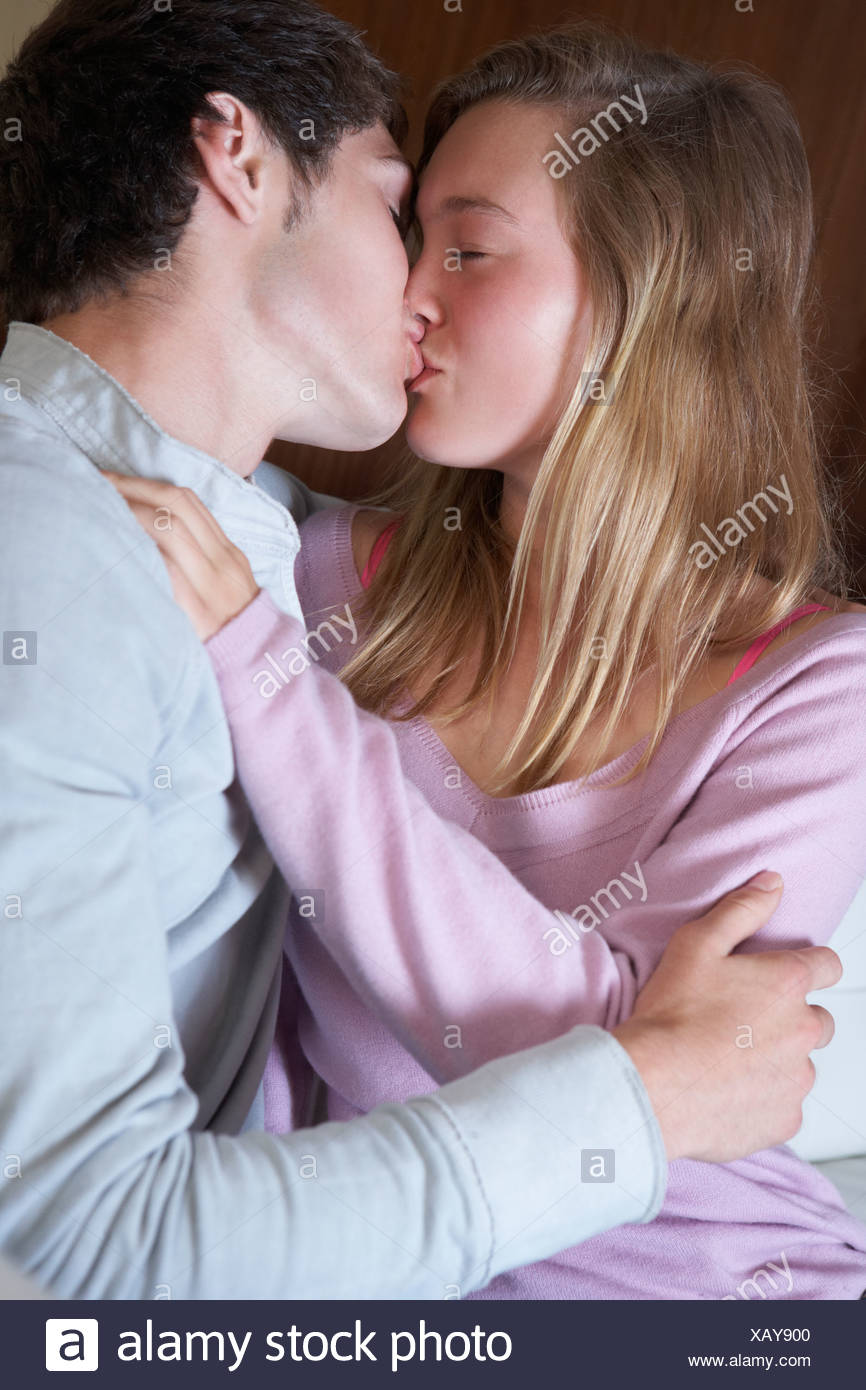 Couple baise sur le sofa