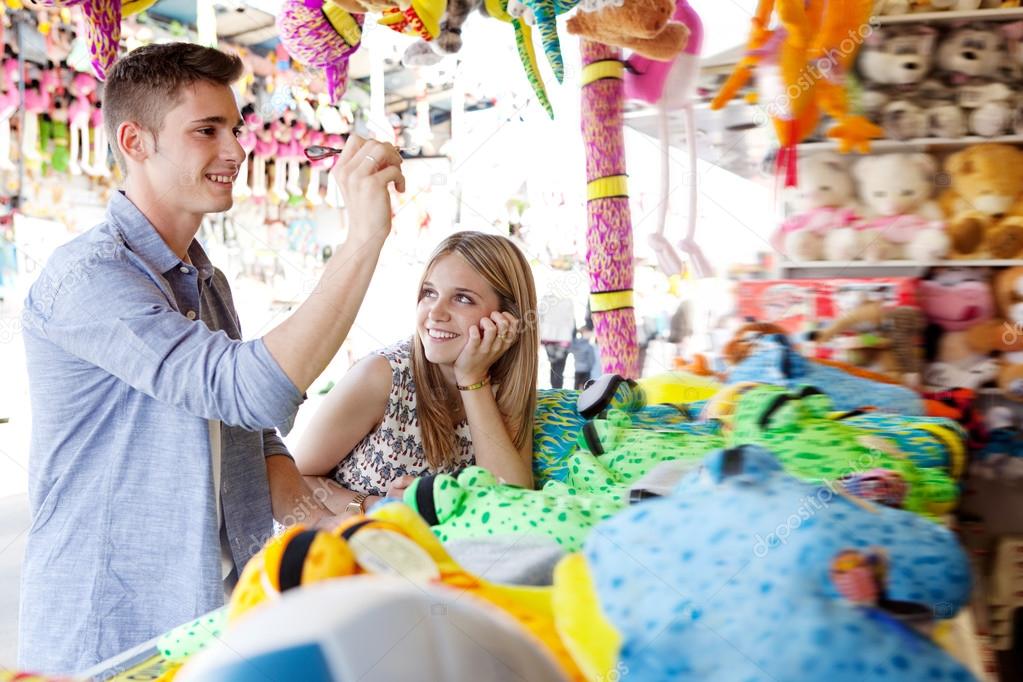 Couple playing toys