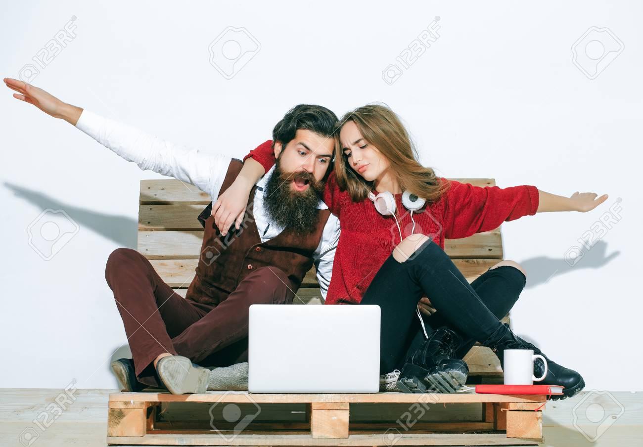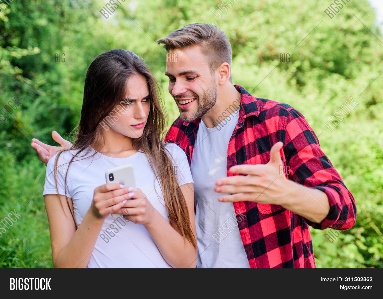 Couple using girl