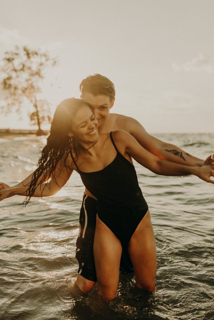 Married couple are teasing each other on the beach video