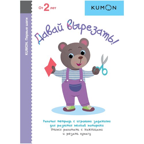 Kumon Let's Cut - un cahier d'exercices pour les tout-petits. Laissez le petit créer ses premiers appliqués ! Apprendre à connaître les ciseaux - amusant et sûr Avant de commencer, lisez les instructions pour travailler avec le cahier. Utilisez des ciseaux avec de petits trous pour les doigts et des bords arrondis. Attirez l'attention de votre enfant sur les lignes marquées le long desquelles l'outil doit être guidé. Chaque feuille est une image accompagnée d'une tâche. Coupez la page pour faciliter la tâche de votre enfant. Soutenez votre bébé s’il est incapable d’accomplir une tâche avec précision. L'essentiel est d'apprendre à votre enfant à utiliser correctement les ciseaux ! Les tâches du cahier sont organisées selon le principe « du simple au complexe ». Tout d'abord, l'enfant apprend à découper une feuille en ligne droite, puis le long d'une ligne courbe. En même temps, il se souvient des noms des objets et des créatures représentés sur les images. À la fin du livre, vous trouverez un certificat attestant de la réussite des tâches. Inspirez votre tout-petit vers de nouvelles victoires ! Qualités développées Travailler avec un cahier améliore la dextérité des doigts et apprend à l'enfant la précision et la persévérance. Grâce au design réfléchi, le bébé apprend de nouvelles couleurs et formes. Apprenez une nouvelle compétence - sculptons ! Paramètres du produit : format carnet 210x150 mm, couverture souple, 80 pages Âge recommandé : à partir de 2 ans