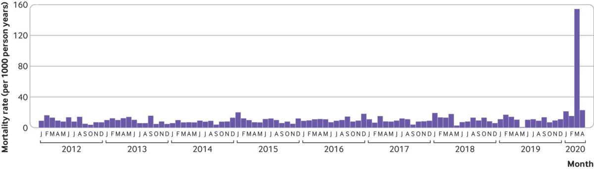 2) Nembro: Monatliche Mortalität von 2012 bis 2020