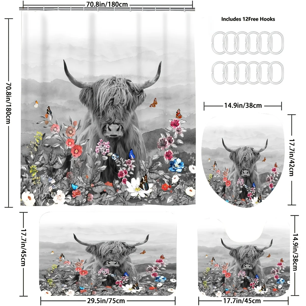 wZolinrtpfЗдесь вы сможете купить Cow Flower Shower Curtain And Rugs Modern Home Bathroom Decor Shower Curtains With Rugs And Toilet Lid Cover With 12 Rings с бесплатной доставкой до вашего почтового отделения.