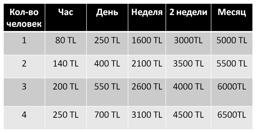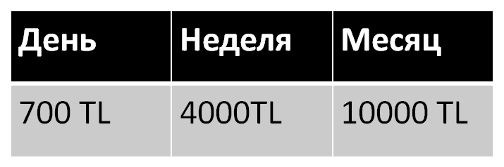 Стоимость посещения коворкинга (TL):