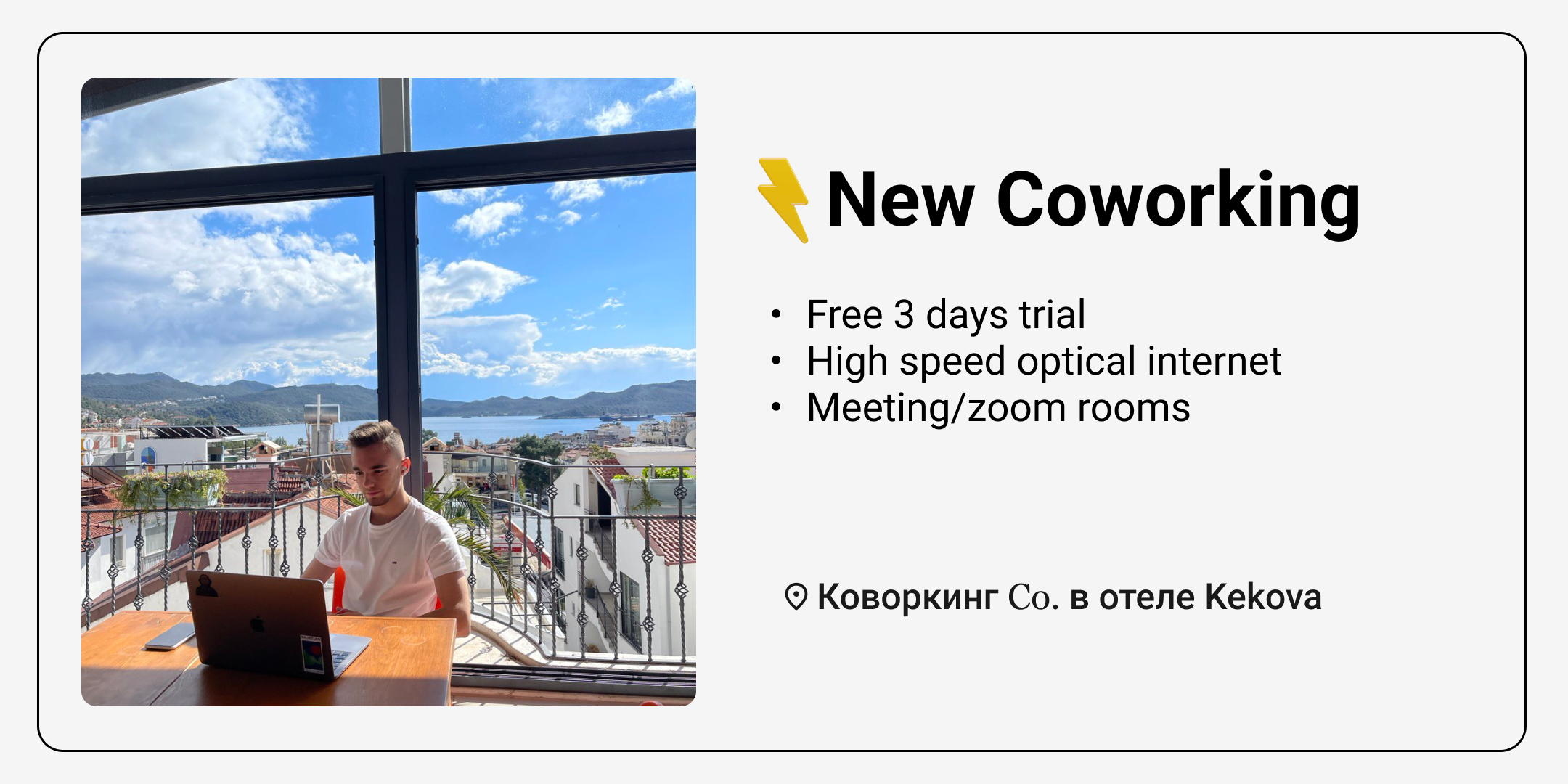 Coworking Co-Kekova Otel.- самый большой коворикинг в Каше с быстрым интернетом отдельными переговорными и зум комнатами.