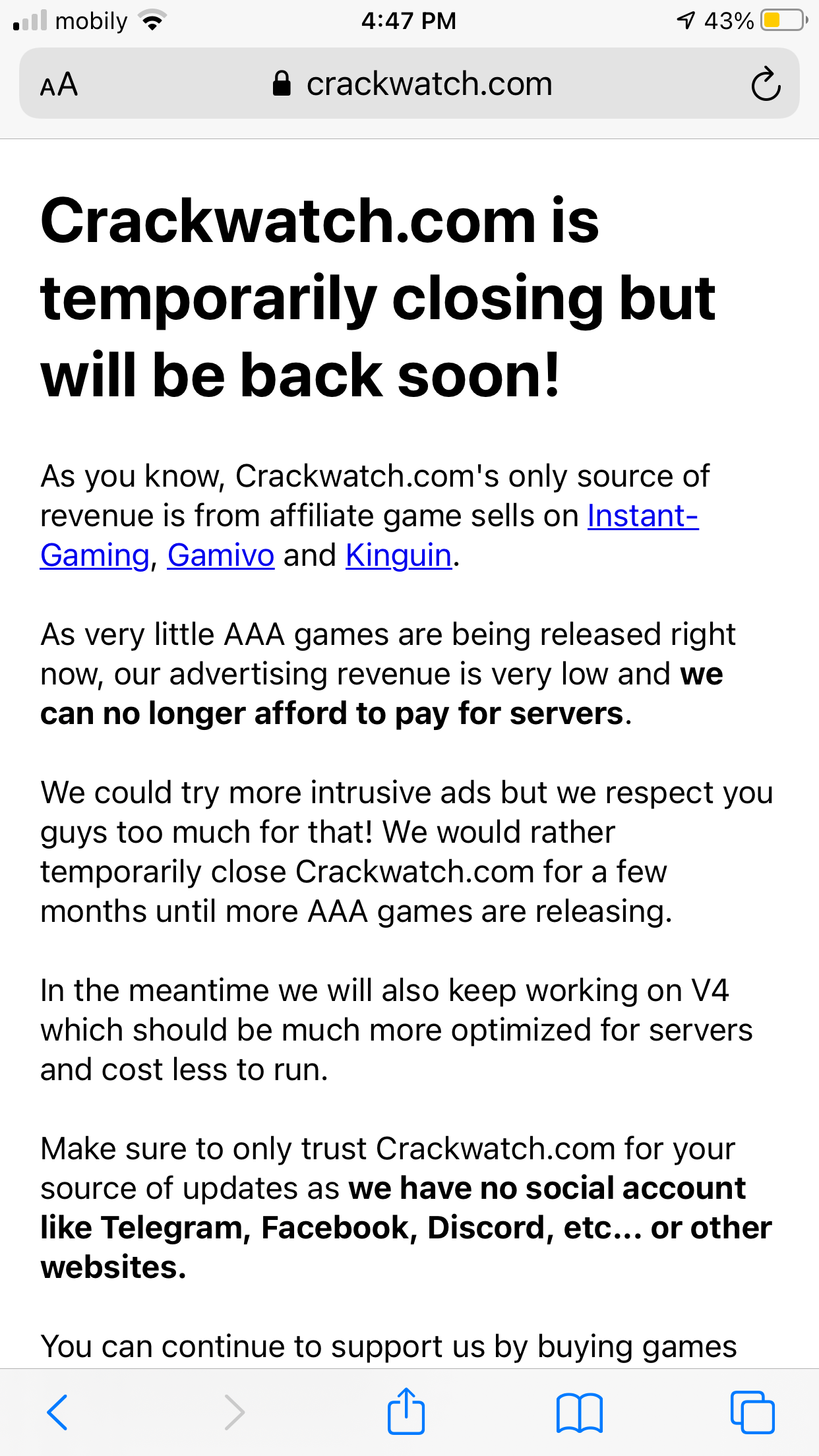 Crackwatch status