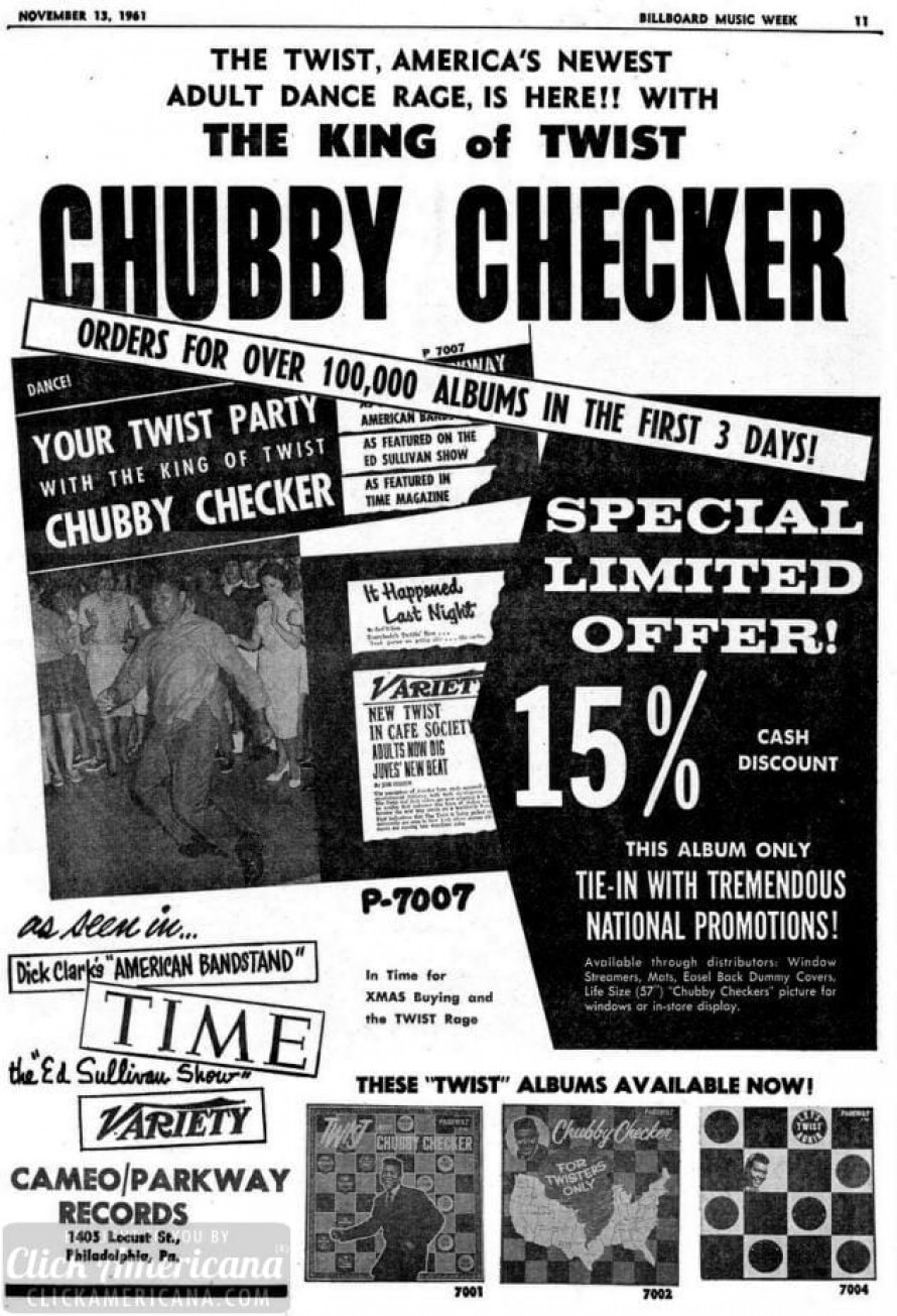 Профиль: American rock'n'roll vocalist, best known for popularizing the "Twist" dance craze with his 1960 hit 7007-LP . Chubby Checker . Your Twist Party (With The King Of Twist) (Album, Comp) .