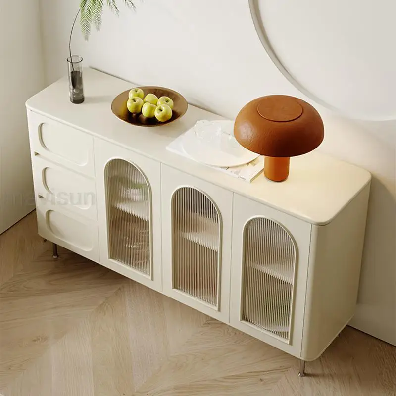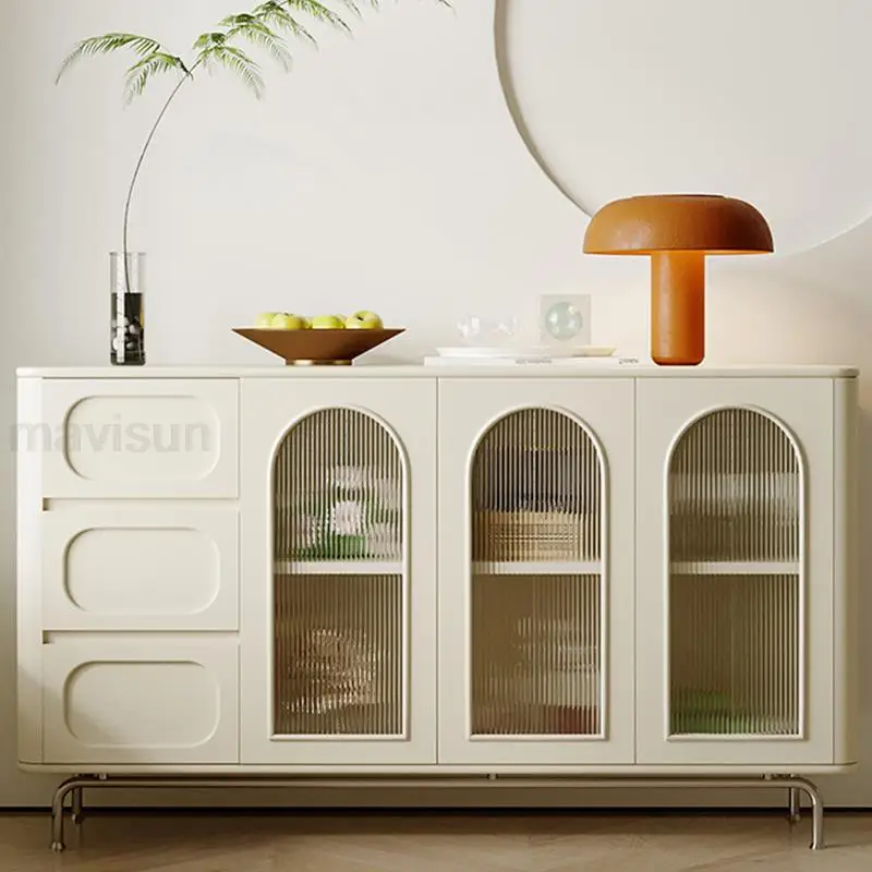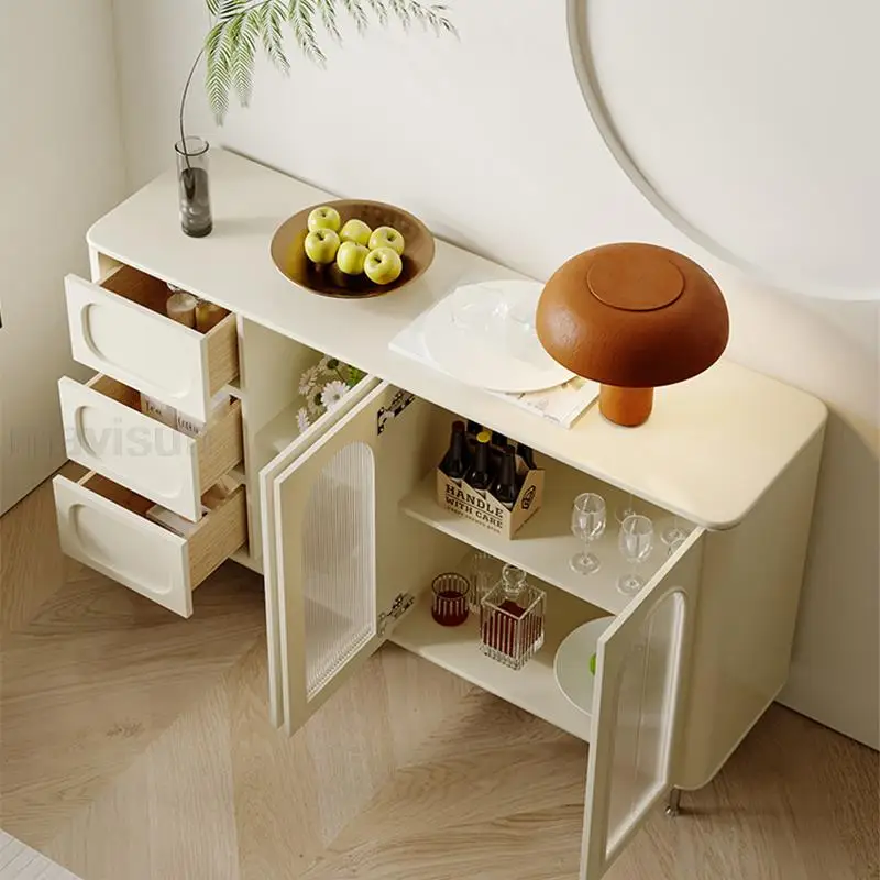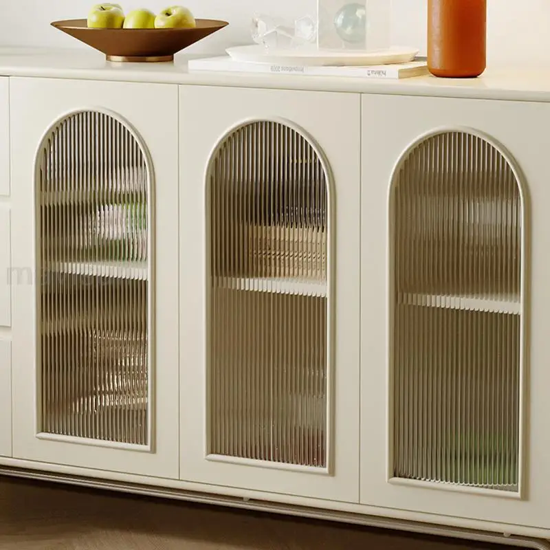 IDmpKVSLNHere you can buy Cream Style Kitchen Cabinets With Three Drawers Large Capacity Storage Transparent Door Wooden White Sideboard Kitchen Cabinet with free delivery to your post office.