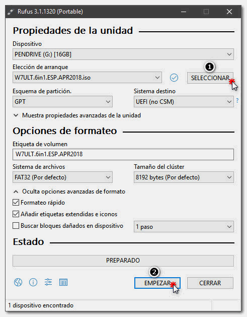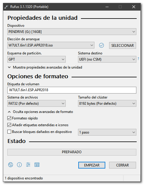 Crear unidad USB arrancable con RUFUS