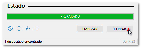 Una vez terminado todo el proceso de creación del USB boteable, le aparece la indicación de Estado/Preparado, procediendo a cerrar la herramienta mediante el botón Cerrar.