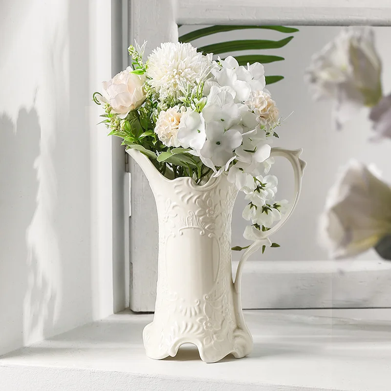 Creative Ceramic Embossed Vases Household European Style Tabletop Ornament Handicrafts Living Room Flower Arrangement Containers - Купить с бесплатной доставкой
