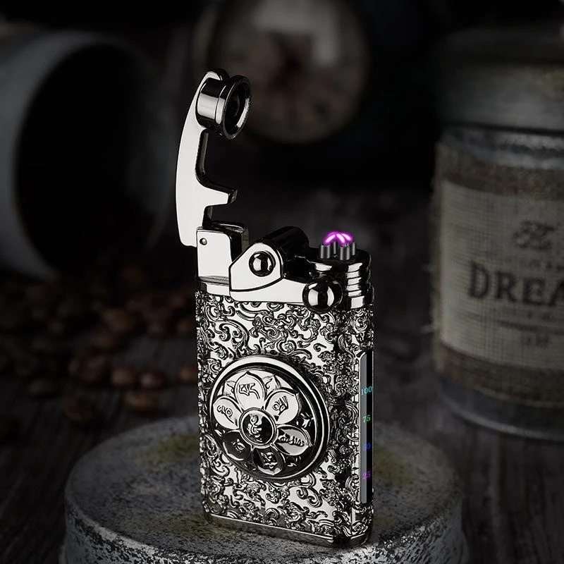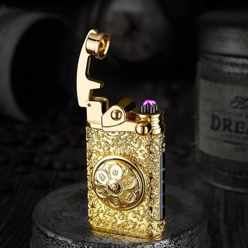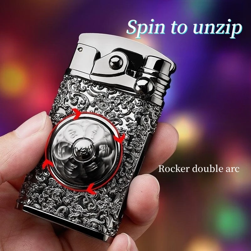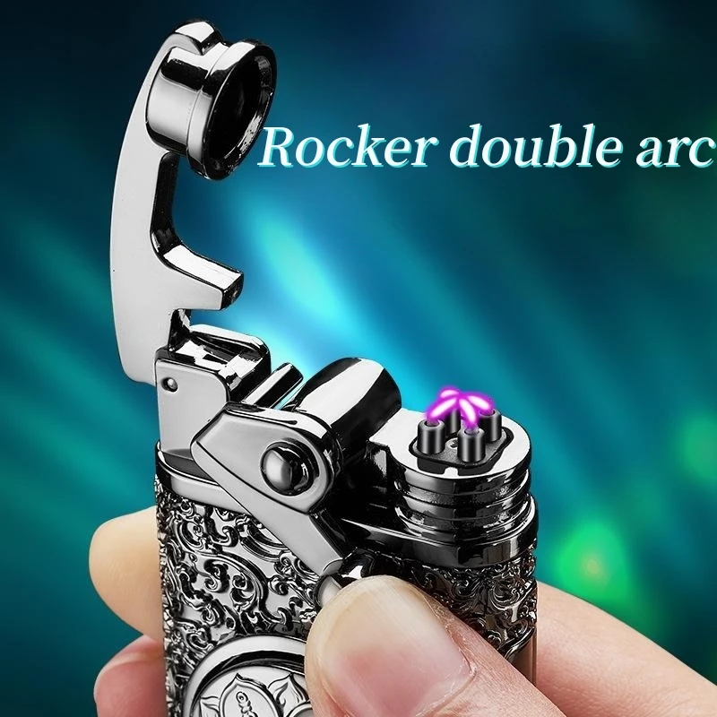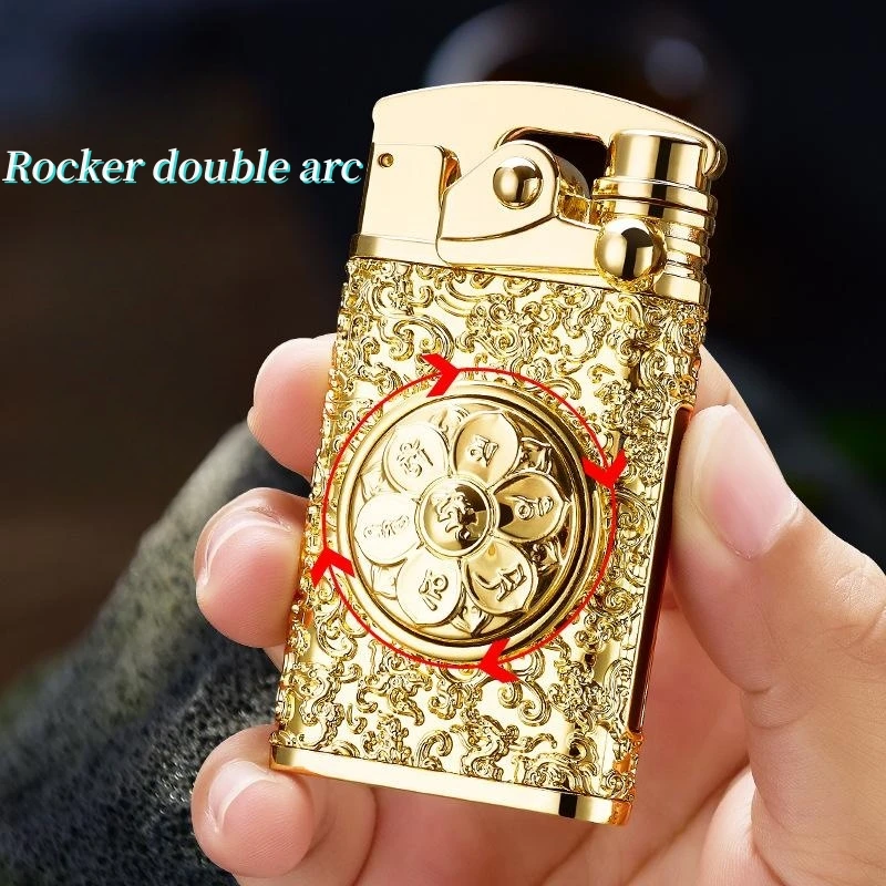 NgYvhlPAGHere you can buy Creative Embossed Rocker Double Arc Lighter Rotary Decompression Six-Character Mantra Cigarette Lighter Men's Portable Lighter with free delivery to your post office.