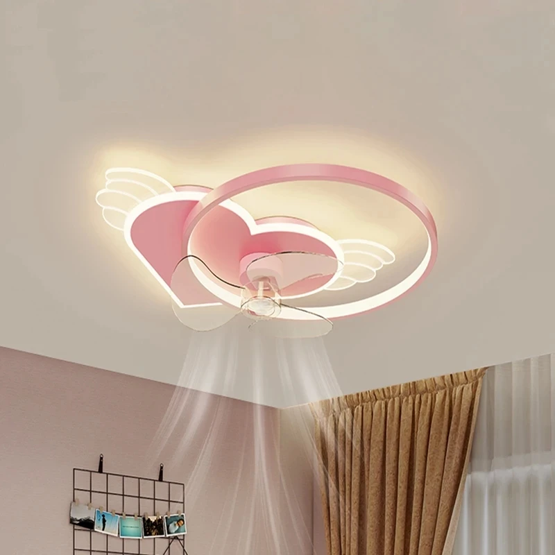 Creative Gifts Iron Copper Movement Quiet Super Wind Pink Children'S Bedroom LED Ceiling Fan Ceiling Fan With LED Light Control - Купить с бесплатной доставкой