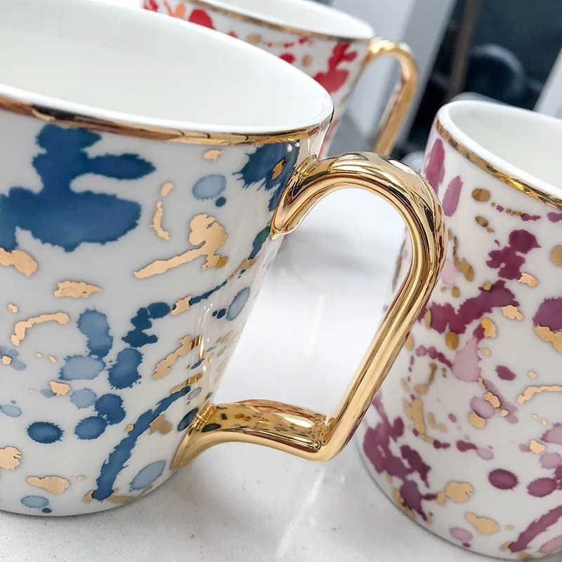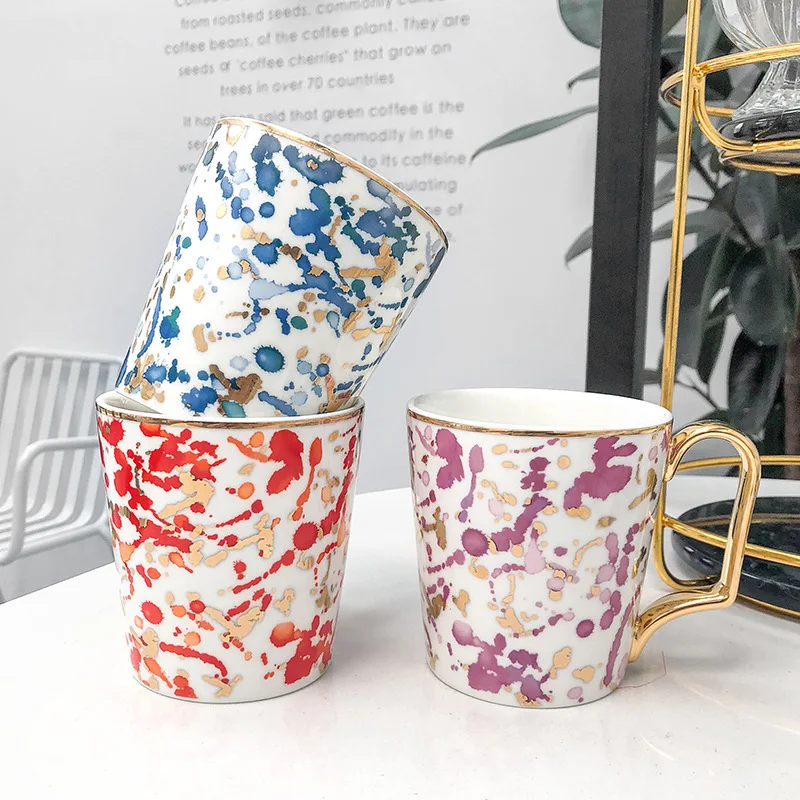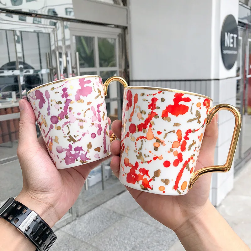 "Creative Hand Painted Big Mugs With Gold Handle Geometry Pattern Ceramic Coffee Tea Milk Cups Irregular Shape Home Decor" * Buy Now With Free Shipping Just For $20