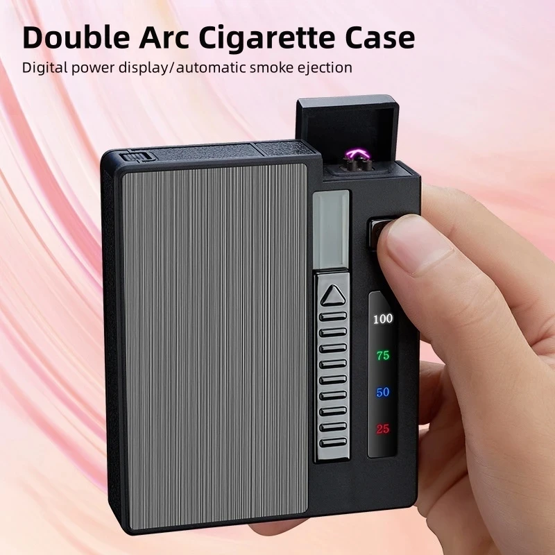 FVtACSNgHere you can buy Creative Metal Automatic Cigarette Electric Double Arc Lighter Multi-Function LED Display Pulse Flameless Ignition Cigarette Box with free delivery to your post office.
